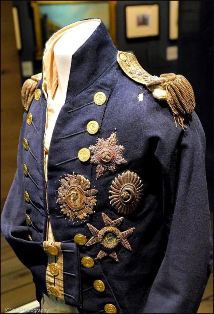 Nelson’s uniform jacket, with the bullet hole from the shot that took his life at Trafalgar.